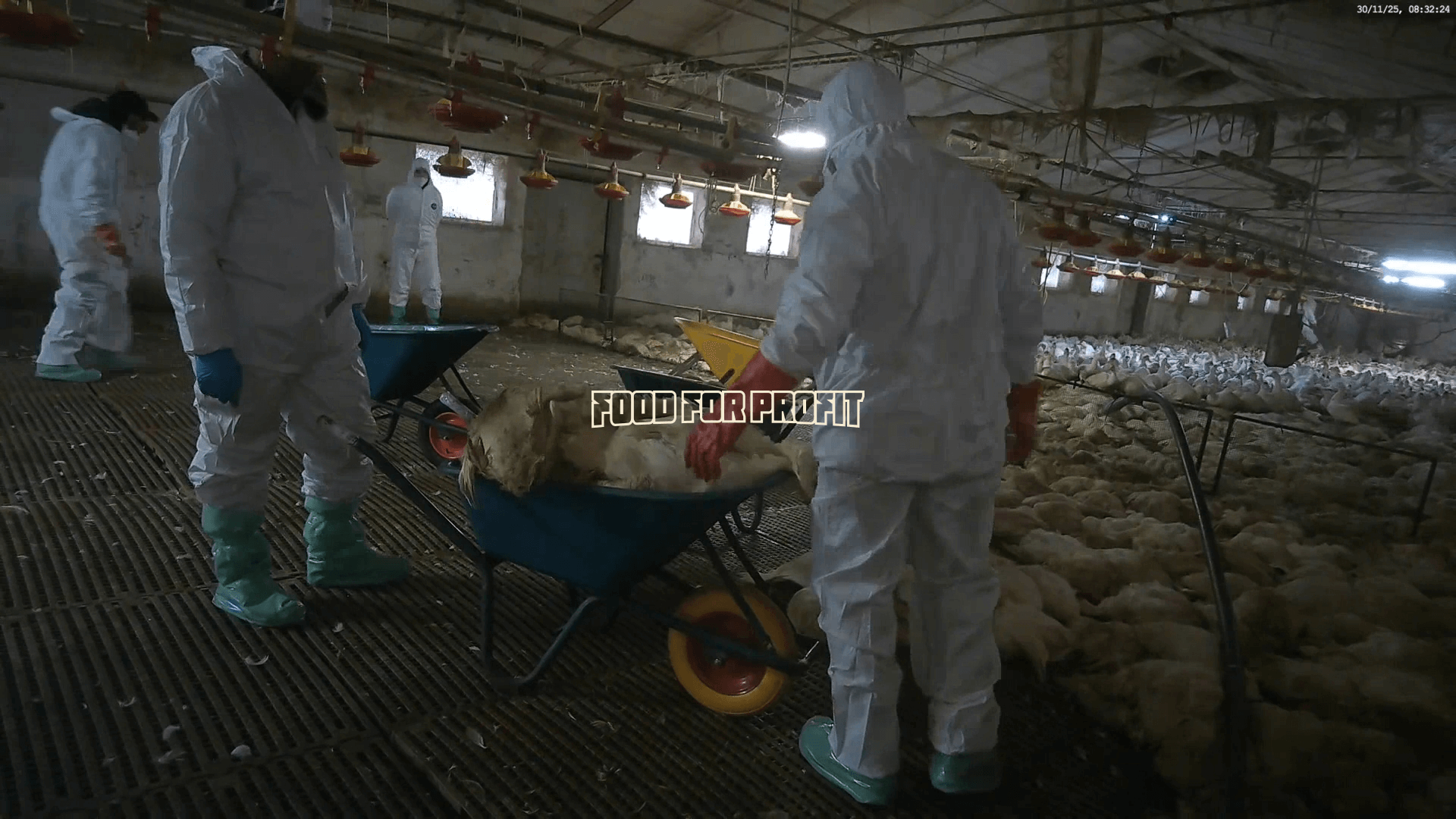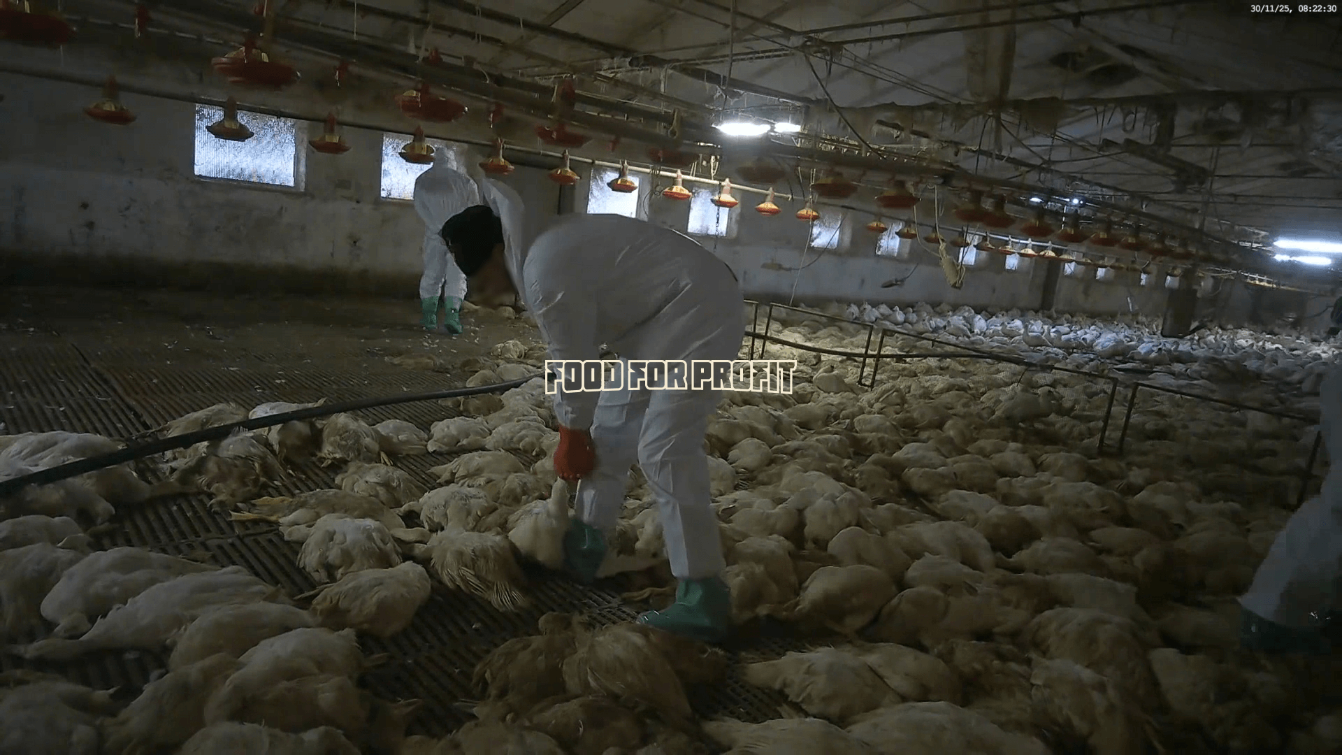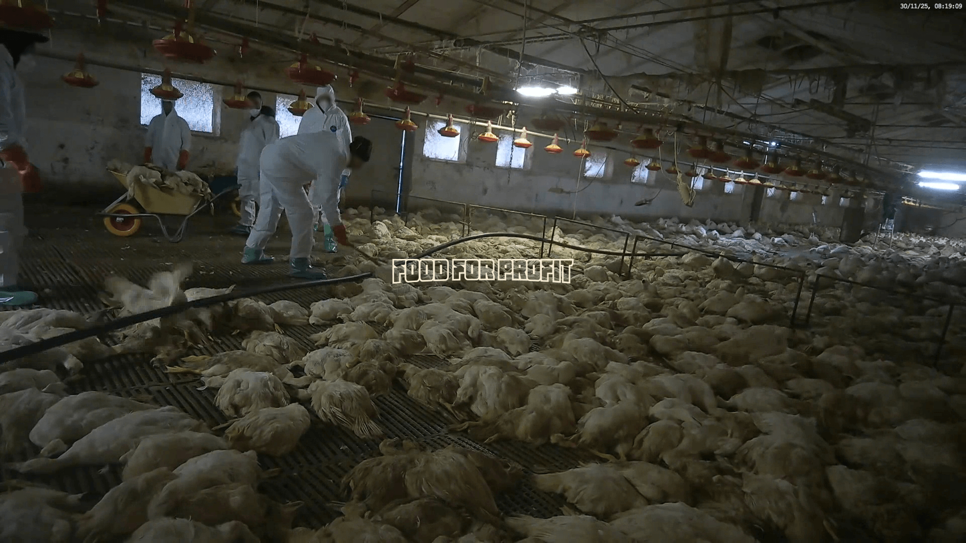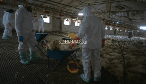 Secondo la normativa quando in un allevamento intensivo viene identificata l’influenza aviaria è necessario effettuare lo stamping-out, cioè l’abbattimento di tutti gli animali presenti. Grazie alle immagini del team di Food for Profit possiamo vedere come questo succede.