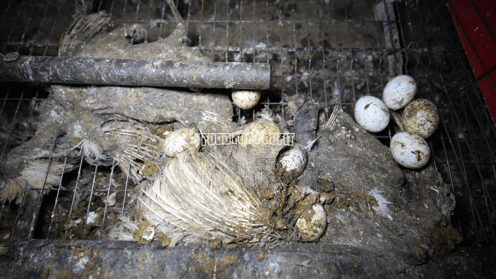Uno scenario altrettanto critico è emerso nell’allevamento intensivo di proprietà di Simone Menesello, figura di rilievo in quanto presidente degli avicoltori per Confagricoltura. All’interno della sua struttura, le immagini mostrano moltissime carcasse di galline e topi nei capannoni e nei corridoi, alcune galline con sangue, altre mummificate. In alcuni casi le galline vive che beccano i resti di quelle morte. Un cumulo di carcasse è stato abbandonato all’esterno, sulla benna di un trattore. In uno dei corridoi addirittura i liquami e le deiezioni raggiungono livelli tali da sommergere i calzari degli operatori fino oltre le caviglie.